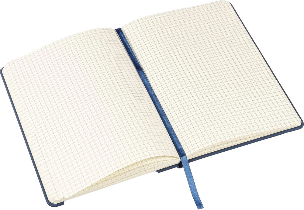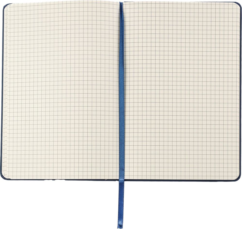 PU notitieboek (ca. A5) met 96 pagina's met 5 mm ruitjes zonder kader. Inclusief leeslint en elastische band om de kaft.