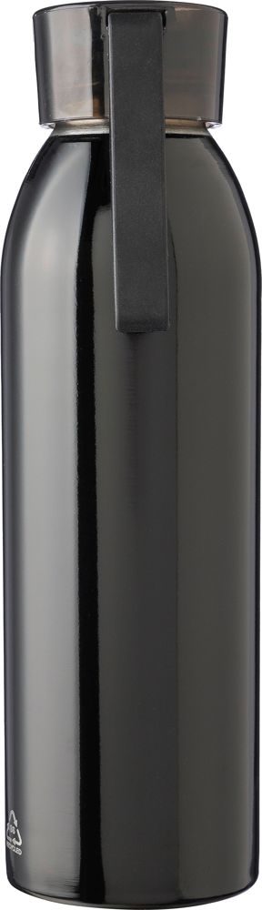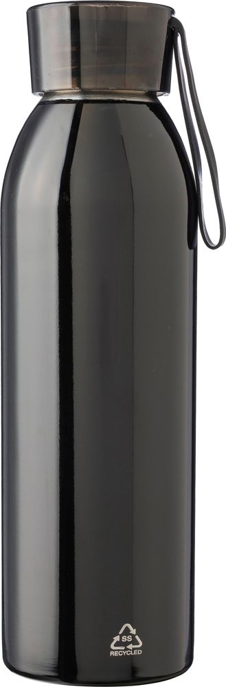 Gerecycled roestvrijstalen drinkfles (650 ml) met PS-dop en siliconen band. De fles is van roestvrij staal 304 gemaakt. Per stuk verpakt in een bruin kartonnen doos.