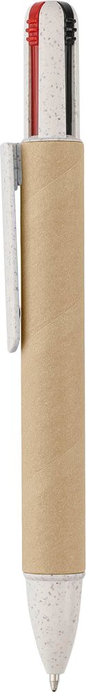 Gerecycled karton en tarwestro vierkleurenbalpen. Inktkleur vullingen: blauw, zwart, rood en groen.