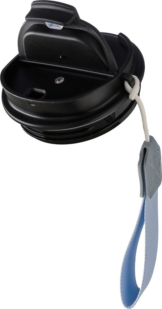Gerecycled roestvrijstalen dubbelwandige drinkbeker (500 ml) met een PP-dop en bijpassende draagriem. De binnenkant is van roestvrij staal 304 en de buitenkant van roestvrij staal 201. Houdt de inhoud 5 uur warm en 8 uur koud. Gerecycled logo gegraveerd op de fles. Per stuk verpakt in een bruine kartonnen doos.