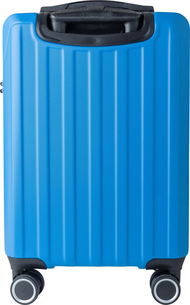 ABS trolley 20-inch met een stevige harde behuizing, 8 zwenkwielen (4x2) en een uitschuifbaar trolley handvat. Inclusief plastic handgreep, een combinatieslot (niet-TSA) en een lasergraveerplaat met 3M-tape. Het interieur, gevoerd met 210D-materiaal, heeft drie compartimenten: een U-vormig ritsvak, een meshvak en X-vormige riemen met een gesp. Capaciteit: 30L. Per stuk verpakt in een bruine kartonnen doos.