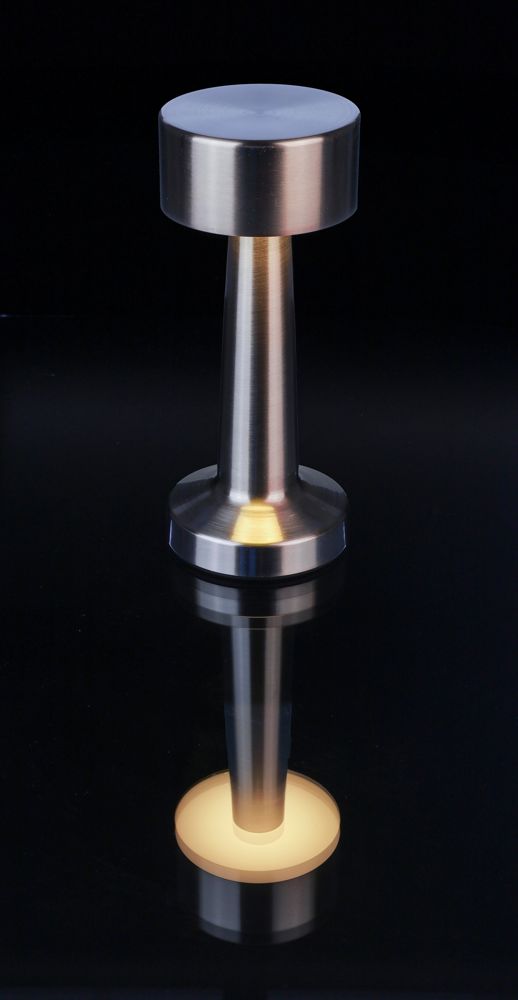 Metalen en ABS tafellamp met 24 LED’s en drie lichtmodi (wit, neutraal, warm), bedienbaar via een touchsensor aan de bovenkant. Inclusief een 800 mAh-batterij en Type-C oplaadmogelijkheid met een 1 meter lange kabel. De lamp is dimbaar per lichtmodus en heeft een aan/uit-knop aan de onderkant. Per stuk verpakt in een bruine kartonnen doos.