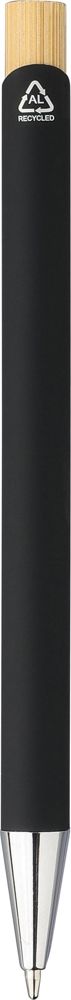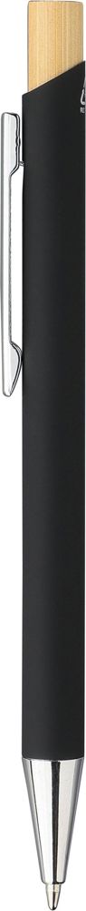 Bamboe schrijversset bestaande uit een bamboe en rubbercoating gerecyclede aluminium balpen met blauwe inkt, bamboe drukknop en verchroomde kunststof punt. Met een bamboe en rubbercoating roestvrijstalen rechthoekige sleutelhanger. Beide items hebben een spiegeleffect na lasergravure en zijn voorzien van een gerecycled aluminiumlogo. Verpakt in een kraftpapieren doos met fluwelen inlay.