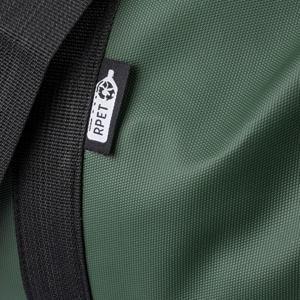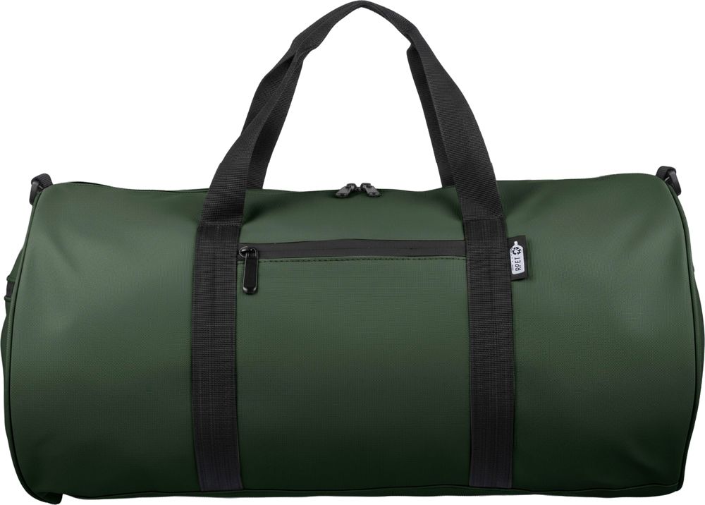 rPET sporttas gemaakt van 600D polyester met 210D voering en waterafstotende PU-coating. Voorzien van een groot hoofdvak met ritssluiting, klein voorvak met ritssluiting voor decoratie, een extra klein zijvak met ritssluiting en een zijvak van mesh. Uitgerust met twee handvatten en een verstelbare schouderriem. Inhoud 40 liter. Inclusief rPET-label aan de buitenzijde.