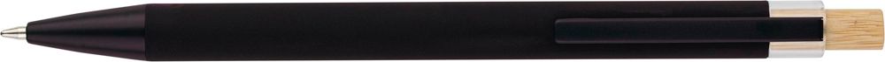 Balpen van gerecycled aluminium met bamboe drukknop en AS-kunststof detail. Voorzien van metalen clip en kunststof punt, beide in bijpassende kleuren. Lasergegraveerd gerecycled logo op het houdertje. Geschatte schrijflengte van 800 meter. Blauwe inkt.