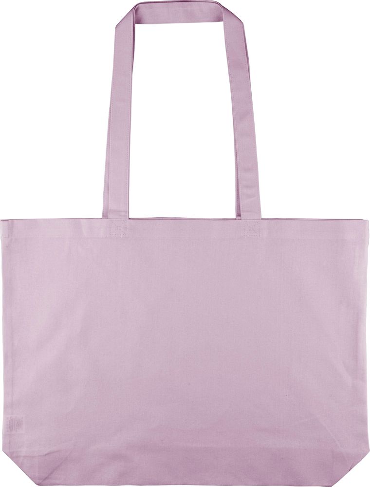 Oeko-Tex® katoen (14?g/m²) boodschappentas met een bodemvouw van 10?cm en lange hengsels (70?cm lang, 2,5?cm breed). Pastelkleurig katoen in PMS 9562U (groen), 162U (oranje), 317U (blauw) en 522U (paars). Voorzien van een Oeko-Tex® label.