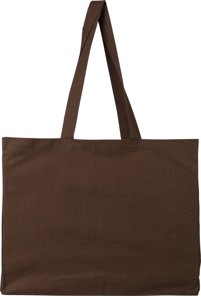 Oeko-Tex® katoen (18?g/m²) boodschappentas in D-vorm met een bodemvouw van 13?cm. Afmeting 43?×?34?cm. Lange hengsels (67?cm lang, 3?cm breed). Voorzien van een Oeko-Tex® label.