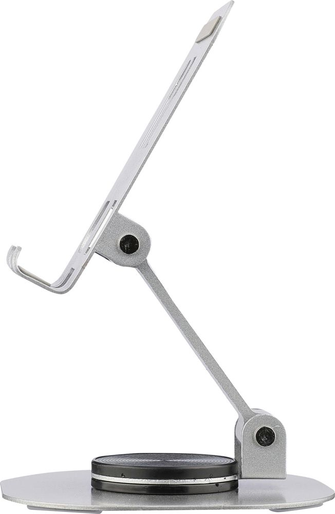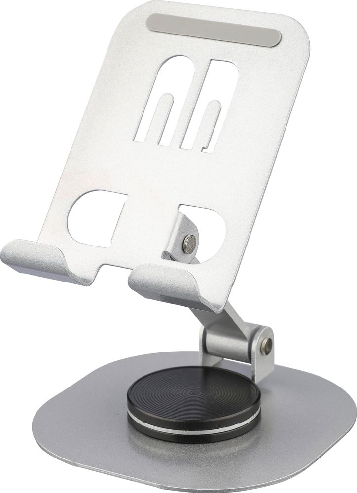 Telefoonstandaard van aluminiumlegering met 360 graden draaifunctie. Volledig plat opvouwbaar voor eenvoudige opslag. Stevig en verzwaard ontwerp zorgt voor stabiele ondersteuning. Per stuk verpakt in een witte doos.