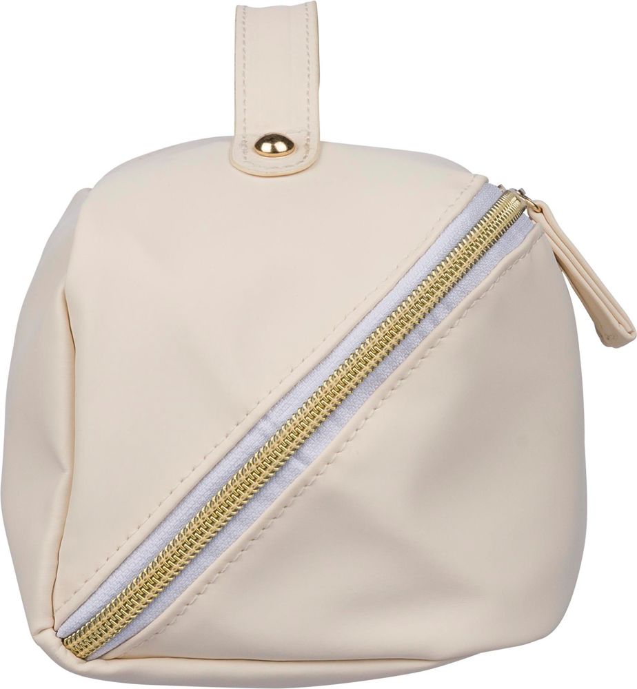 Toilettas met rits van gerecycled PU met centrale ritssluiting voor een brede opening en gemakkelijke toegang. Voorzien van een kort handvat, een ruim interieur met vier vakken, waaronder één klein binnenvak met ritssluiting. Afgewerkt met een voering van 210D gerecycled polyester en één gerecycled label aan de binnenzijde.