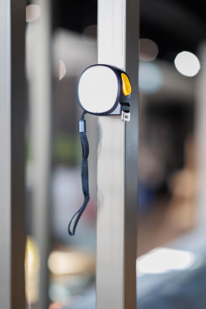 ABS rolmaat met magnetische zijde voor eenvoudige bevestiging op metalen oppervlakken. Voorzien van een 5?meter lange en 19?millimeter brede metalen meetband met schaalverdeling in centimeters en inches. Inclusief drukknop bovenop voor vergrendelen/ontgrendelen en polsband van polyester. Individueel verpakt in een bruine kartonnen doos met illustratie.