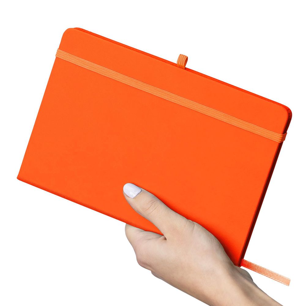 A5-notitieboekje met gerecyclede harde kaft, met een gerecycled logo in reliëf op de achterkant. Gemaakt van duurzame, flexibele materialen (PU) die comfort, demping en langdurige prestaties bieden. De kaft is geschikt voor lasergravure, waardoor een subtiel ton-sur-ton kleureffect ontstaat. Bevat 80 gelinieerde pagina's van 70 g/m² papier, met bijpassende gekleurde elastische band, leeslint en pennenlus. Het papier in dit notitieboekje is FSC® Mix-gecertificeerd.