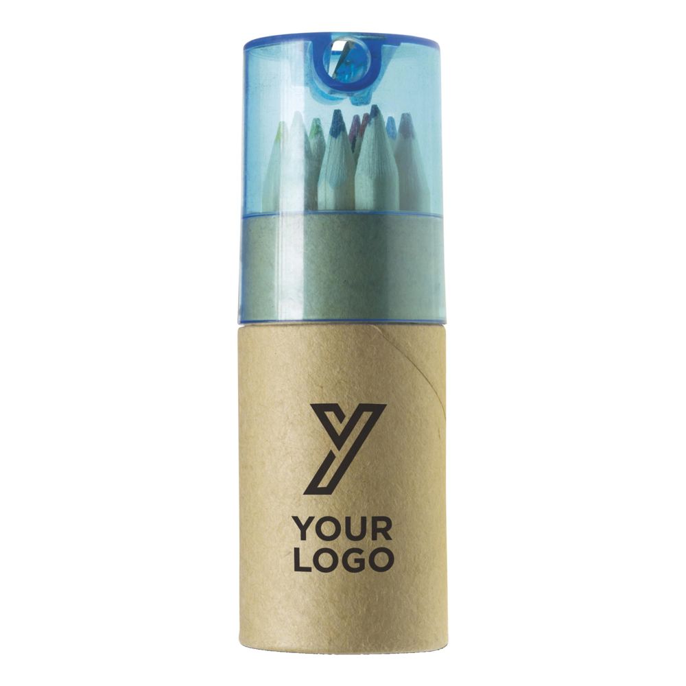 Set van 12 kleurpotloden in een 'ECO' koker, met een doorschijnend kunststof dop met puntenslijper.
