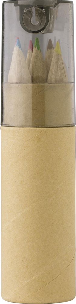 Set van 6 kleurpotloden in een 'ECO' koker, met een doorschijnend kunststof dop met puntenslijper.