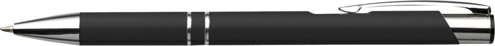 Aluminium balpen, blauwschrijvend, met metalen clip, tip en top. Voorzien van Duitse Dokumental-inkt.