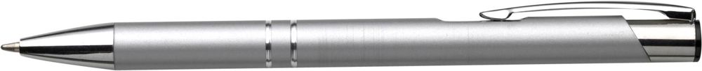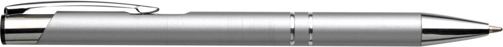 Aluminium balpen, blauwschrijvend, met metalen clip, tip en top. Voorzien van Duitse Dokumental-inkt.