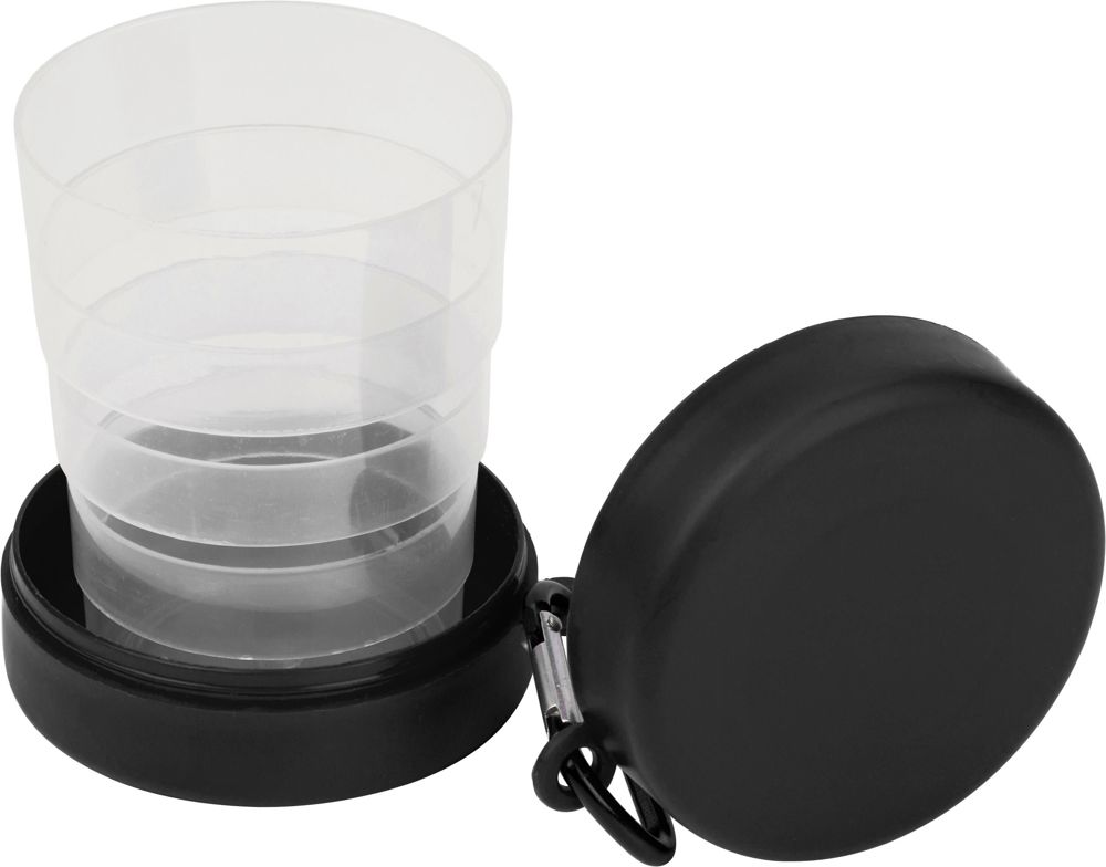 Opvouwbare kunststof drinkbeker (220 ml) met karabijnhaak.