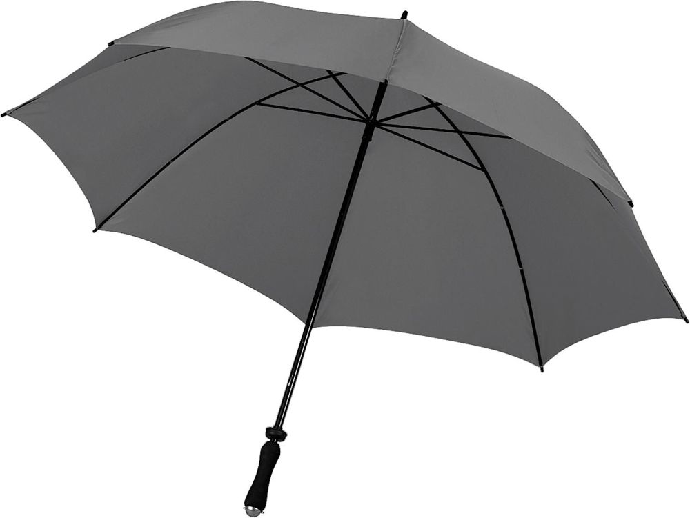 Handmatige polyester golfparaplu (210T), met 8 panelen, EVA-foam handvat, kunststof tips, metalen steel en baleinen en klittenbandsluiting, in een hoes met draagband.