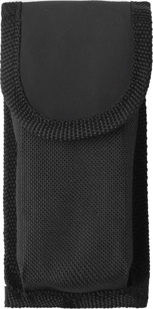 9-Delig roestvrijstalen trendy multitool met kunststof accenten, in een nylon etui met riemlus.