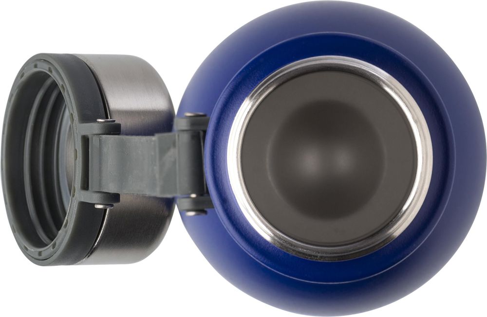 Roestvrijstalen dubbelwandige drinkfles (600 ml) met een siliconen band voor de dop. Verpakt in geschenkverpakking.