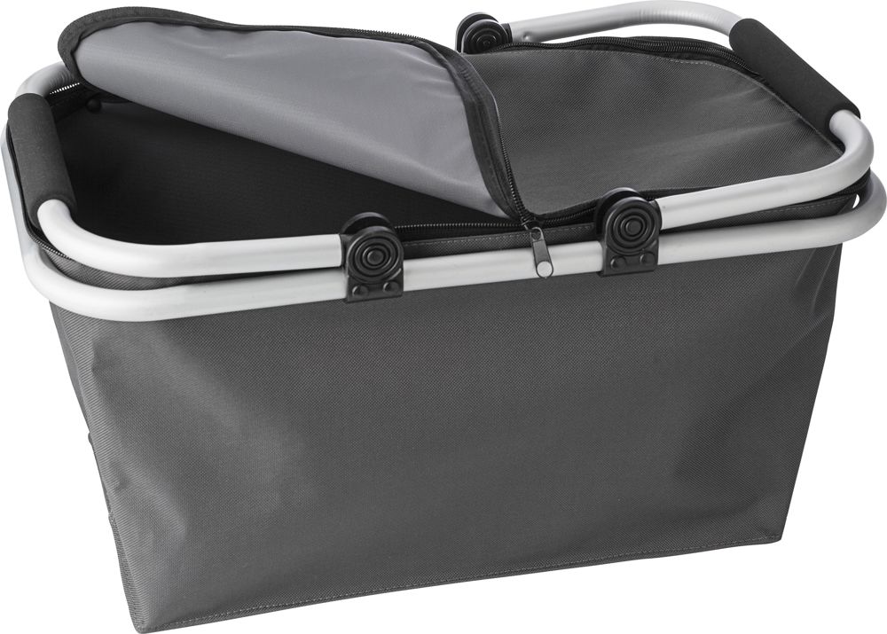 Polyester (320-330gr) boodschappenmand (Oxford), met een aluminium frame en handvaten van EVA schuim, met ritssluiting aan de bovenzijde.