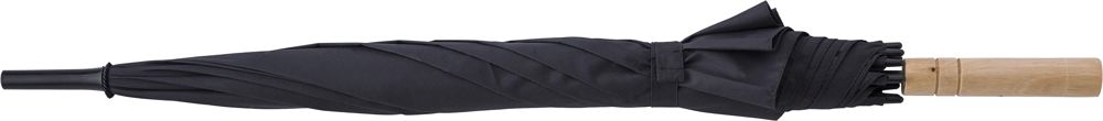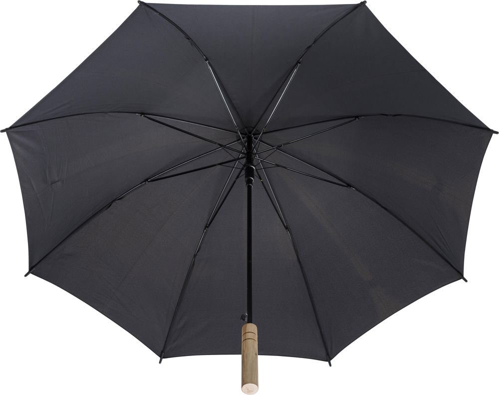 rPET pongee (190T) automatische paraplu met 8 panelen. Bamboe handvat en metalen frame.