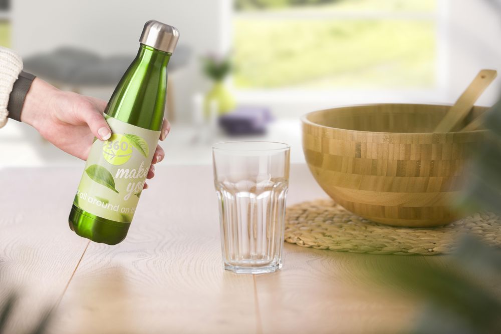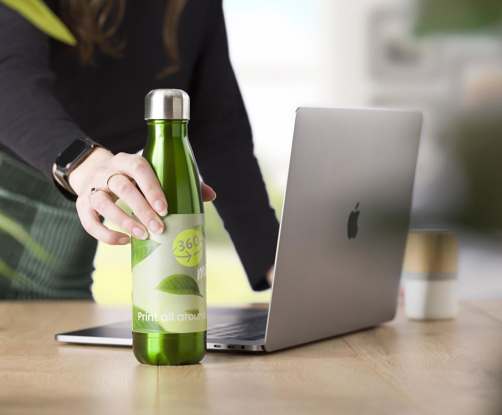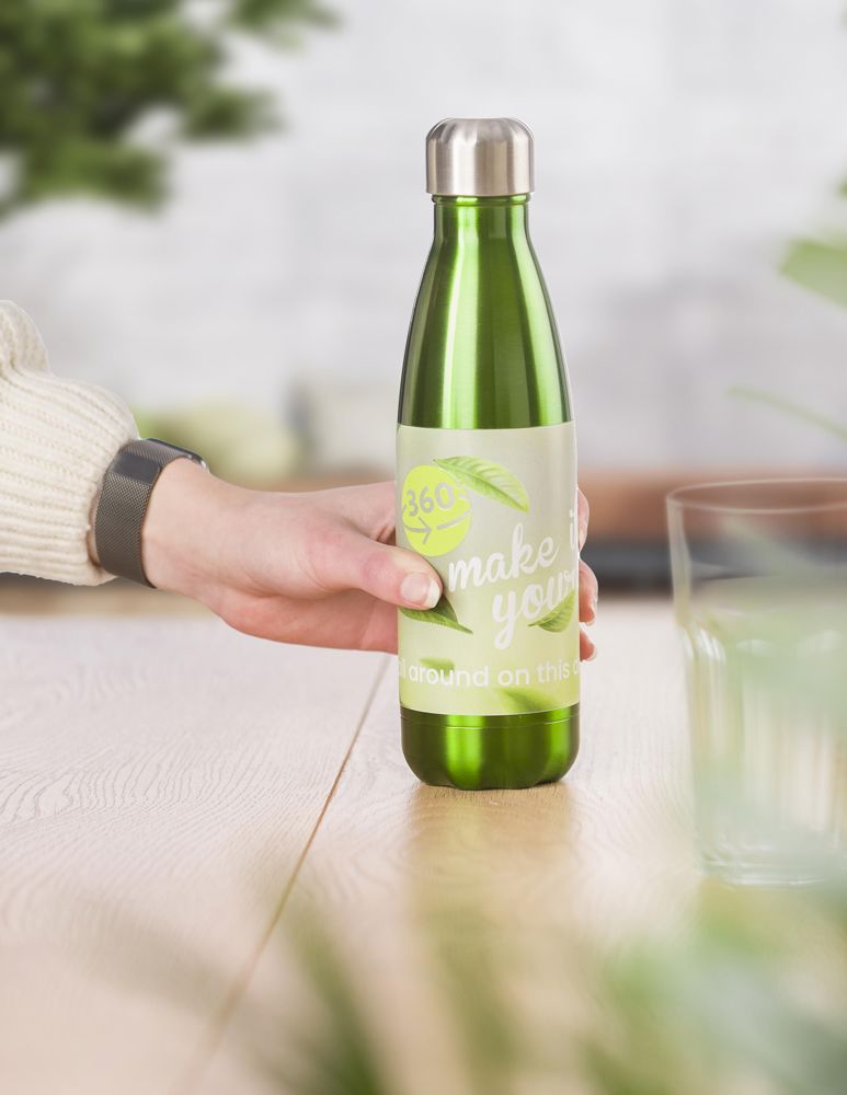 Roestvrijstalen, enkelwandige fles (650 ml) met draaidop.