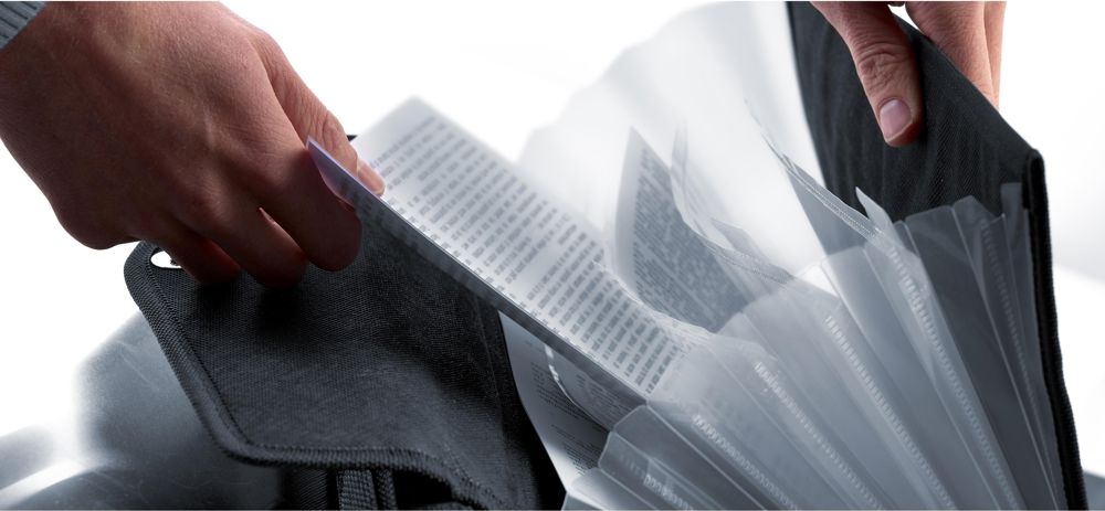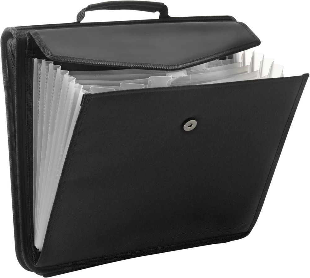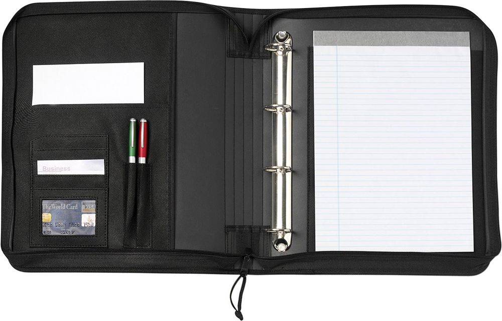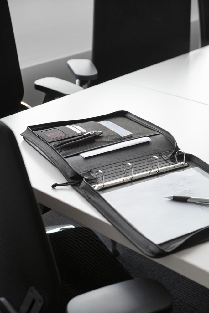 Polyester (600D) documentenmap (A4), met ringband, ritssluiting, harmonicamap en diverse insteekvakken.