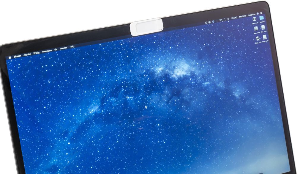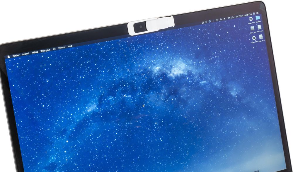 PP webcam cover met dubbelzijdige stickers voor bevestiging. Het schuifje gaat makkelijk open en dicht. Artikel plakt niet op glazen oppervlaktes.