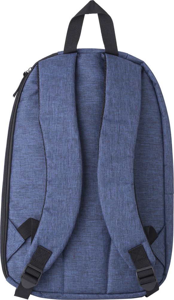 Polyester (300D) rugzak met voorvak en vakken aan de zijkant. De schouderbanden zijn verstelbaar.