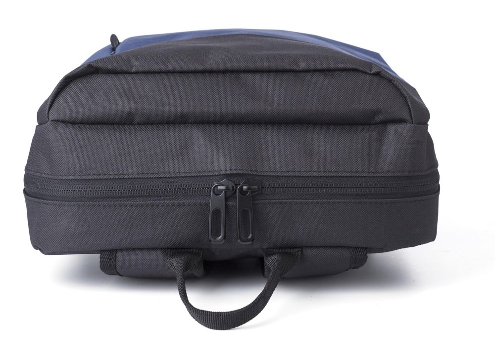 Polyester (600D) rugzak met voorvak met rits. De schouderbanden zijn gewatteerd en verstelbaar.