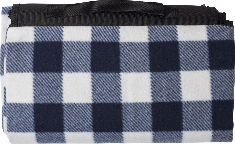 rPET opvouwbare polarfleece deken. 150 gram. PEVA-ondersteuning. Voorvak met ritssluiting. Kort handvat.