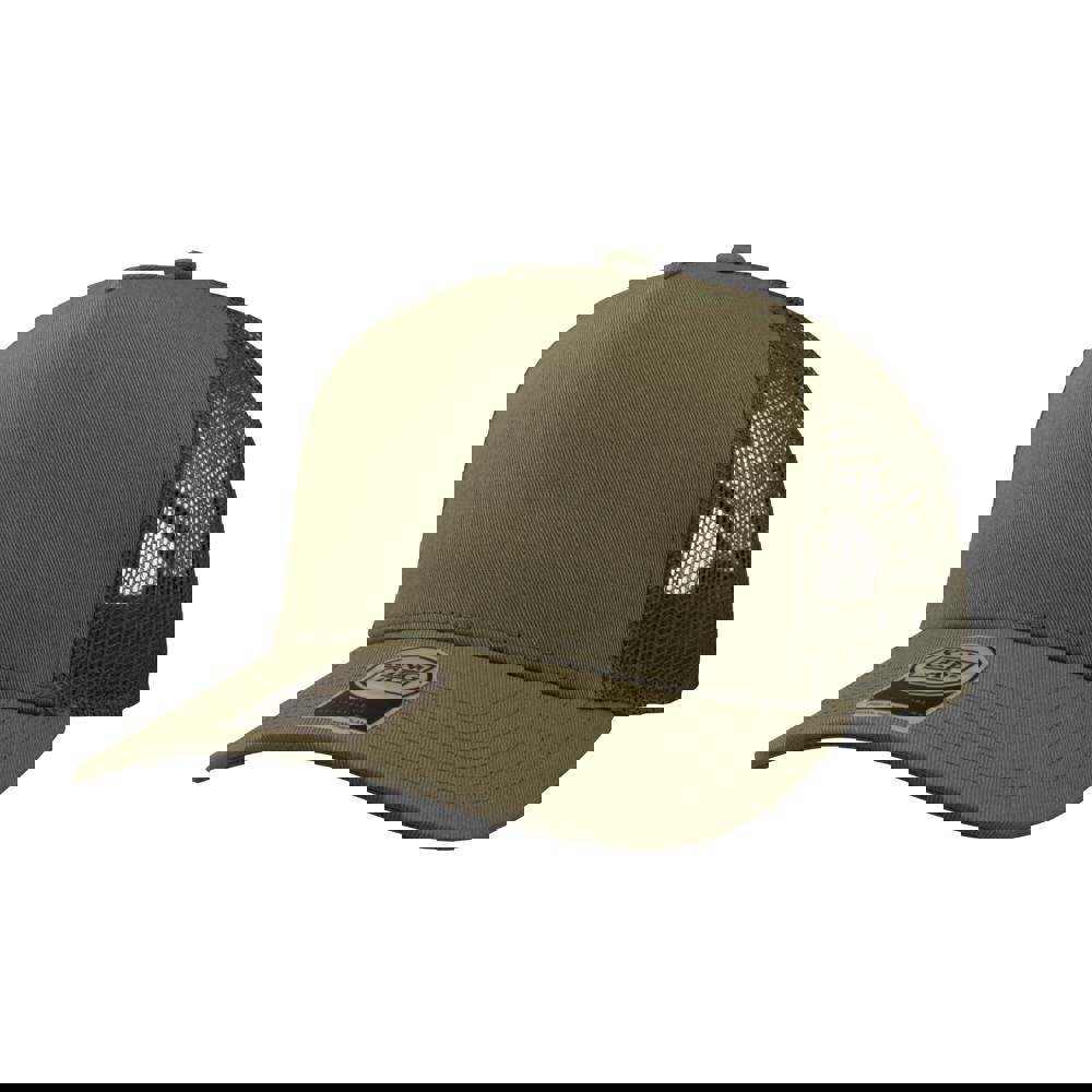 6 panel cap met frontvoering. Voorzien van gelaserde vertilatiegaatjes aan de zijkant en achterkant. Medium profile. Soft kunststoffen druksluiting. Uitgevoerd in 100% gerecycled nylon.