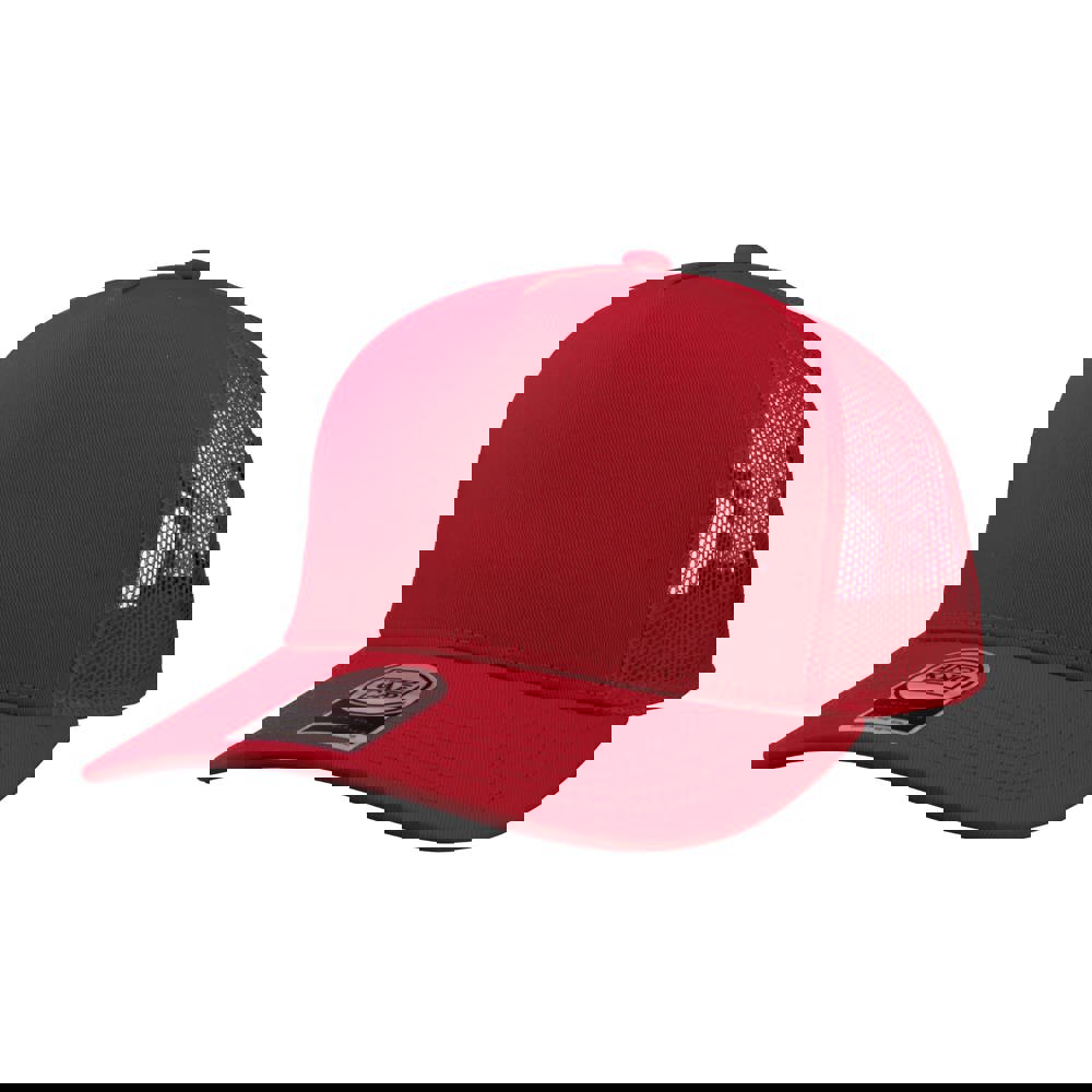 6 panel sports cap met frontvoering. Voorzien van een memory visor. Medium profile. Mat zwarte open metalen gesp sluiting. Uitgevoerd in 97% gerecycled ottoman en 3% spandex. UPF50+ zonbescherming.