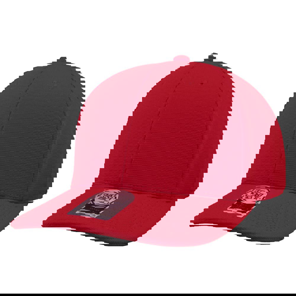 6 panel sports cap met frontvoering. Voorzien van een memory visor. Medium profile. Mat zwarte open metalen gesp sluiting. Uitgevoerd in 97% gerecycled ottoman en 3% spandex. UPF50+ zonbescherming.
