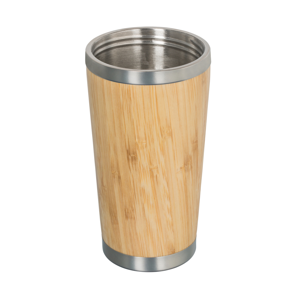 Op de isoleerbeker van duurzame bamboe hebben lasergravures een bijzonder hoogwaardige uitstraling. Hij heeft een dubbele wand en een afsluitbare drinkopening. Inhoud: 350 ml