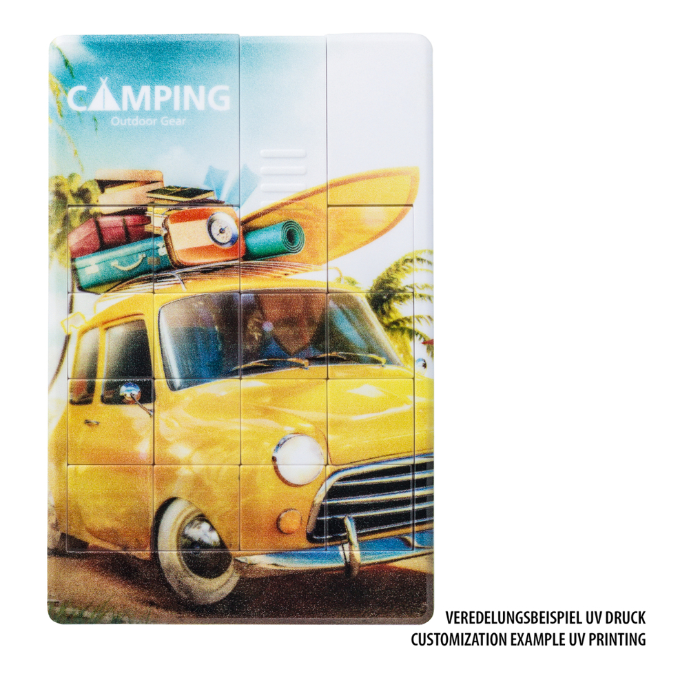 Deze puzzel met gentegreerde USB-stick kan over het hele oppervlak worden voorzien van een UV print. Maak uw logo
