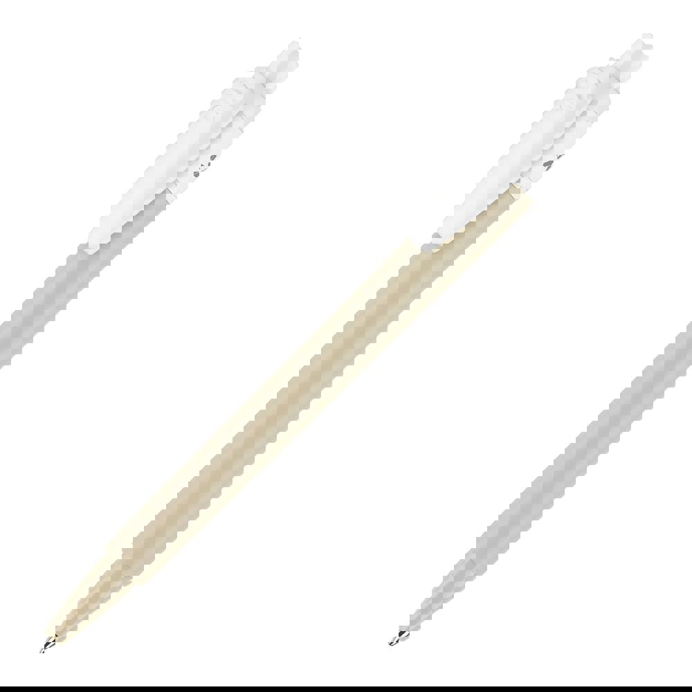 Een chique balpen uit duurzaam bamboe, die zich door zijn bolle vorm van de menigte onderscheidt. Fraaie zilverkleurige sierelementen die het edele ontwerp van deze bamboe-balpen benadrukken.