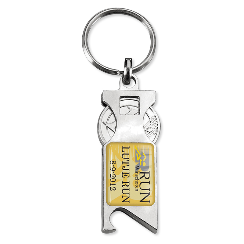 Een praktische 3-in-1 oplaadkabel, direct aan de sleutelbos. In deze sleutelaanhanger is op discrete wijze een oplaadkabel verborgen, waarmee laden van USB naar micro USB of 5 pin voor Apple mogelijk is. Bovendien bevat hij een flesopener. Dankzij het grote veredelingsoppervlak aan de voorkant kunt u deze sleutelaanhanger compleet en vierkleurig bedrukken met uw logo/motief.