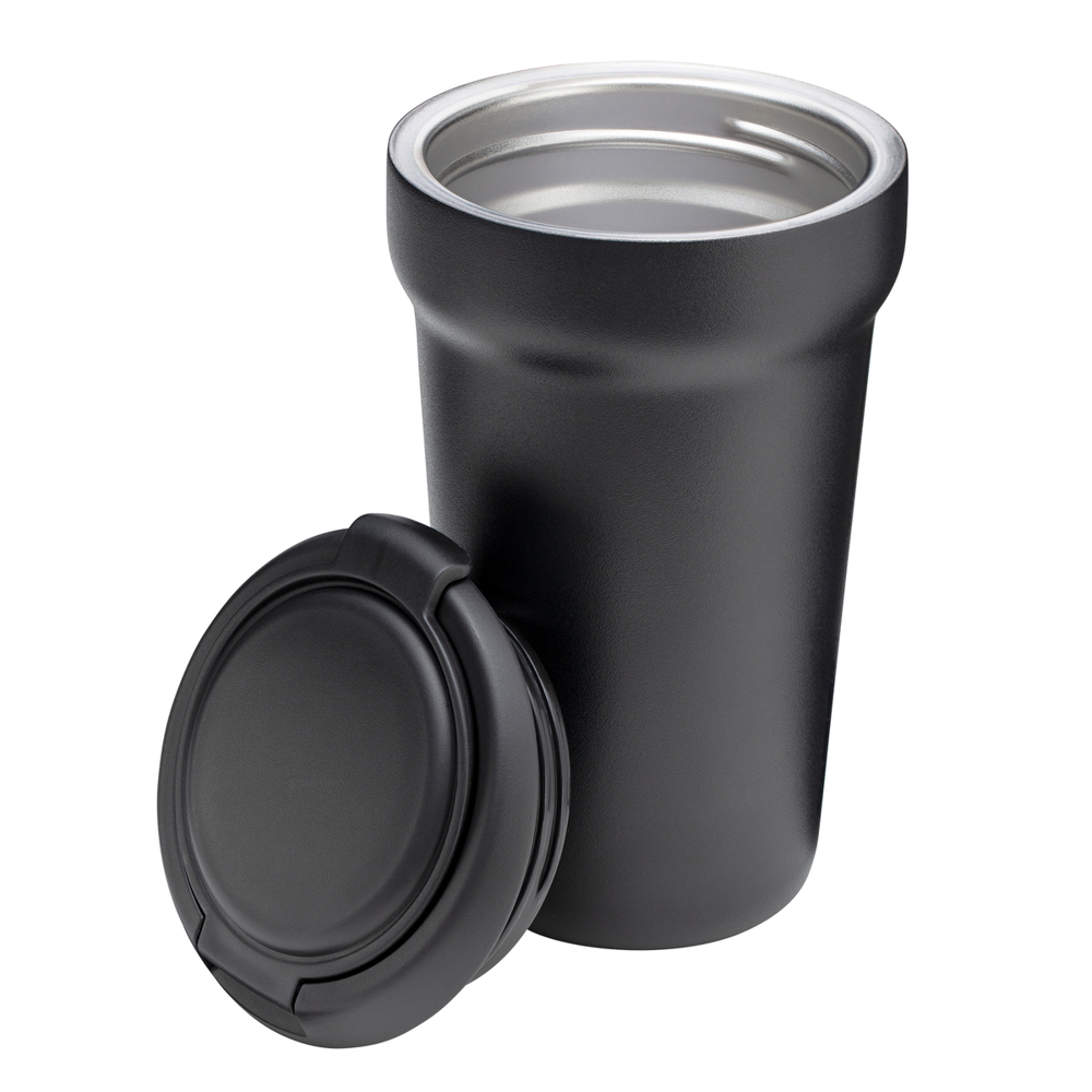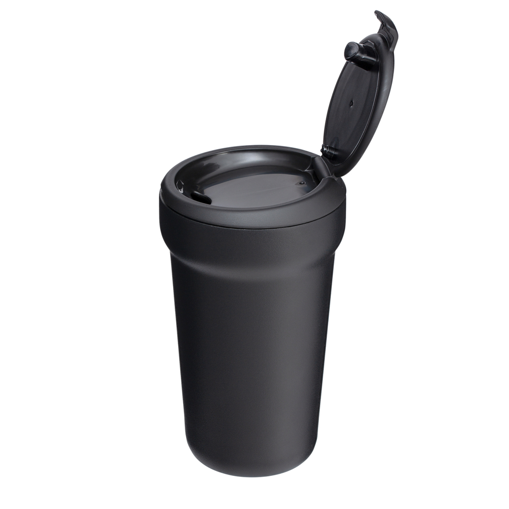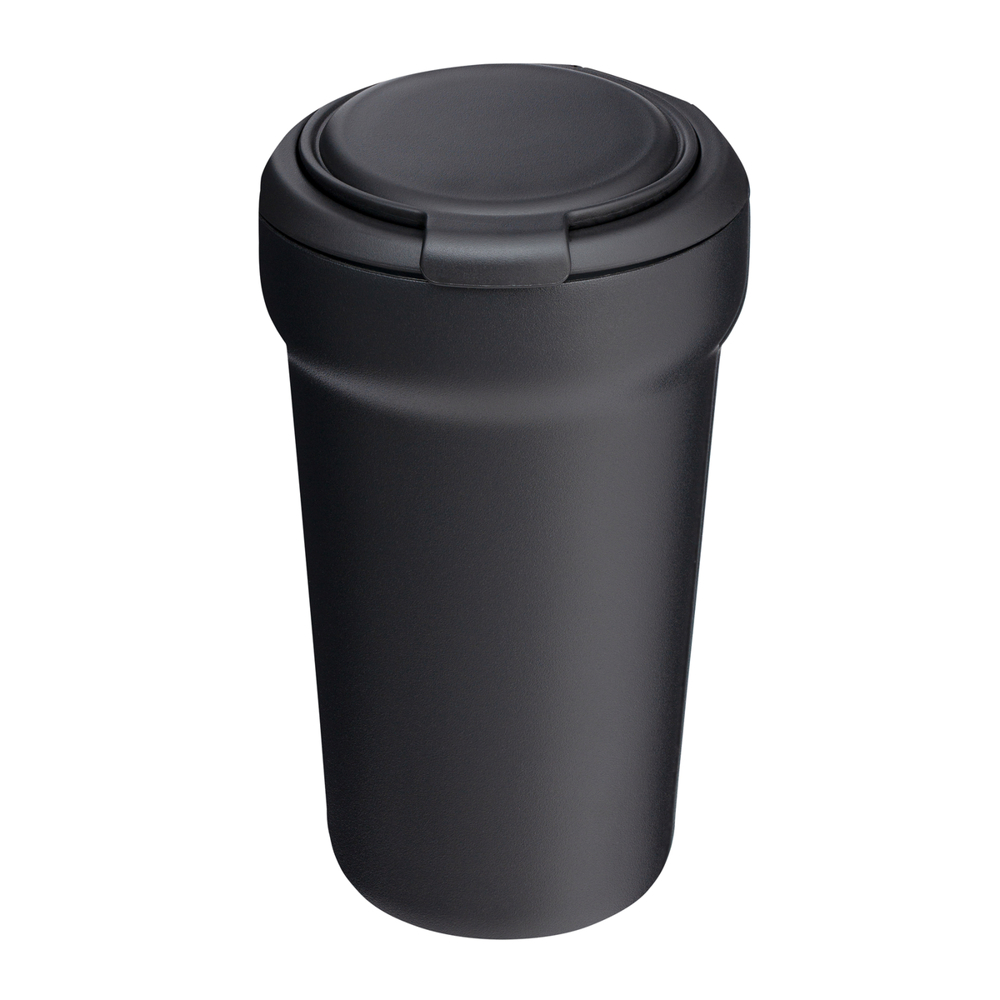 Met RETUMBLER-VIVERO STEEL, een eigen REFLECTS® ontwerp, overhandigt u uw klanten een thermobeker met een grote inhoud van 350 ml en een uitstekende functionaliteit. De beker van gerecycled roestvrij staal is verkrijgbaar in drie versies: met zwarte poedercoating, witte poedercoating en hoogglans zilverkleurig. De poedercoating geeft de thermobeker een moderne, matte uitstraling en een goede krasbestendigheid. De speciale afwerking met hoogglans zorgt voor een absoluut opvallende look van de beker. De deksel is verkrijgbaar in zwart.
