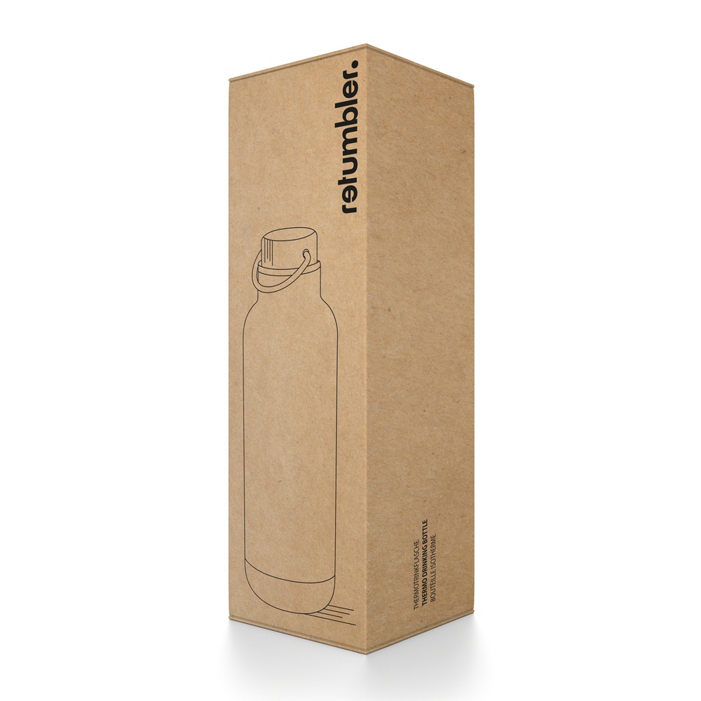 De RETUMBLER-ORTADO-750 is een hoogwaardige thermofles van 750 ml, gemaakt van gerecycled roestvrij staal en polypropyleen. Ze overtuigt met haar aantrekkelijke uitstraling, prettige gevoel en uitstekende kwaliteit. De dubbelwandige fles met vacuümisolatie biedt optimale thermische eigenschappen: dranken blijven tot 11 uur warm en tot 41 uur koud.
