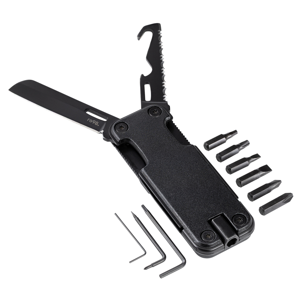 Of het nu tijdens het kamperen, op kantoor of onderweg is – de RE98-PINNO is altijd paraat. Wanneer precisie en veelzijdigheid gevraagd zijn, is de RE98-PINNO er. Dit compacte multitool combineert talrijke functies in een robuuste, elegante all-black behuizing en overtuigt door zijn doordachte ontwerp. Maximale functionaliteit op een minimaal formaat.